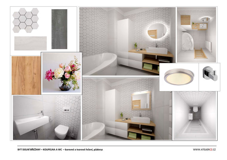 Na počátku této realizace bylo stěhování do nového bytu. Klientka si přála vytvořit něžný ženský interiér v pastelových barvách, bílé a zlaté a zároveň použít velkou část původního nábytku. V novém bytě jsme vyměnili podlahovou krytinu, zvolili nové osvětlení, výmalbu a tapety. Nová koupelna byla pojata v odstínech šedo stříbrné a ložnice v jemné růžové. Dominantou kuchyně spojené s obývacím pokojem se stala bílá kuchyňská linka doplněná zlatou skleněnou mozaikou a svítidly v odstínech mědi.